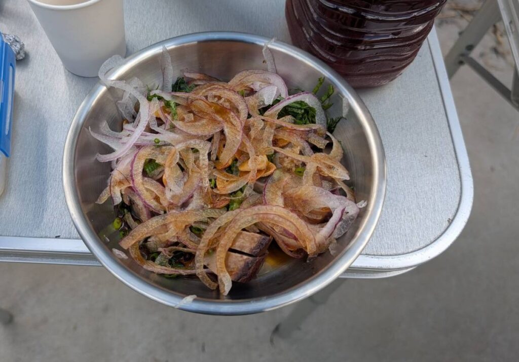ネギやショウガ、ミョウガ、大葉、玉ねぎ、ニンニクチップスなどなど・・・。たくさんの薬味を三宅さんが準備してくれていました♪