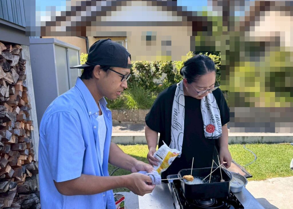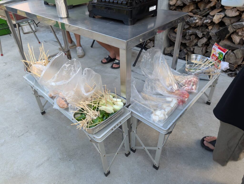 メイン料理その2は、串カツです♪ 野菜系や肉系、エビやちくわチーズ等々、たくさんの材料の仕込みを三宅さんがしてきてくれました!ズラリと並んだ食材は、見ているだけでワクワクします(*^^*)