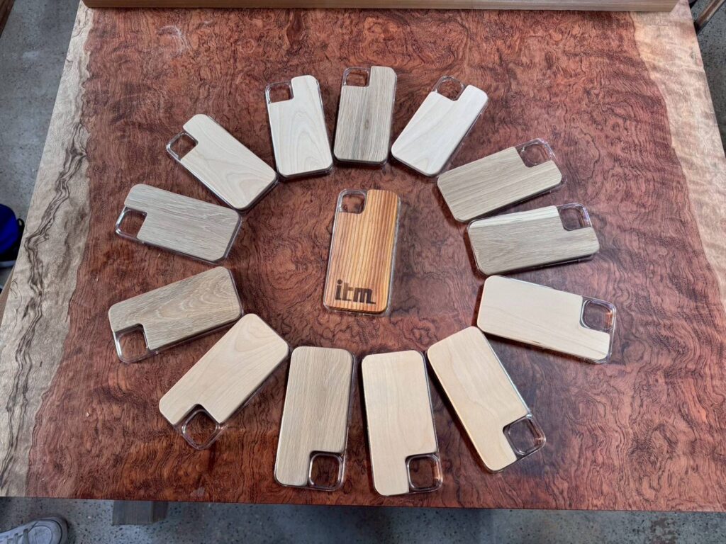 アイ・ティー・エムでは、「ペン立て作りワークショップ」、「木製スマホスタンド」、「木製スマホケース」をお手伝いしております。