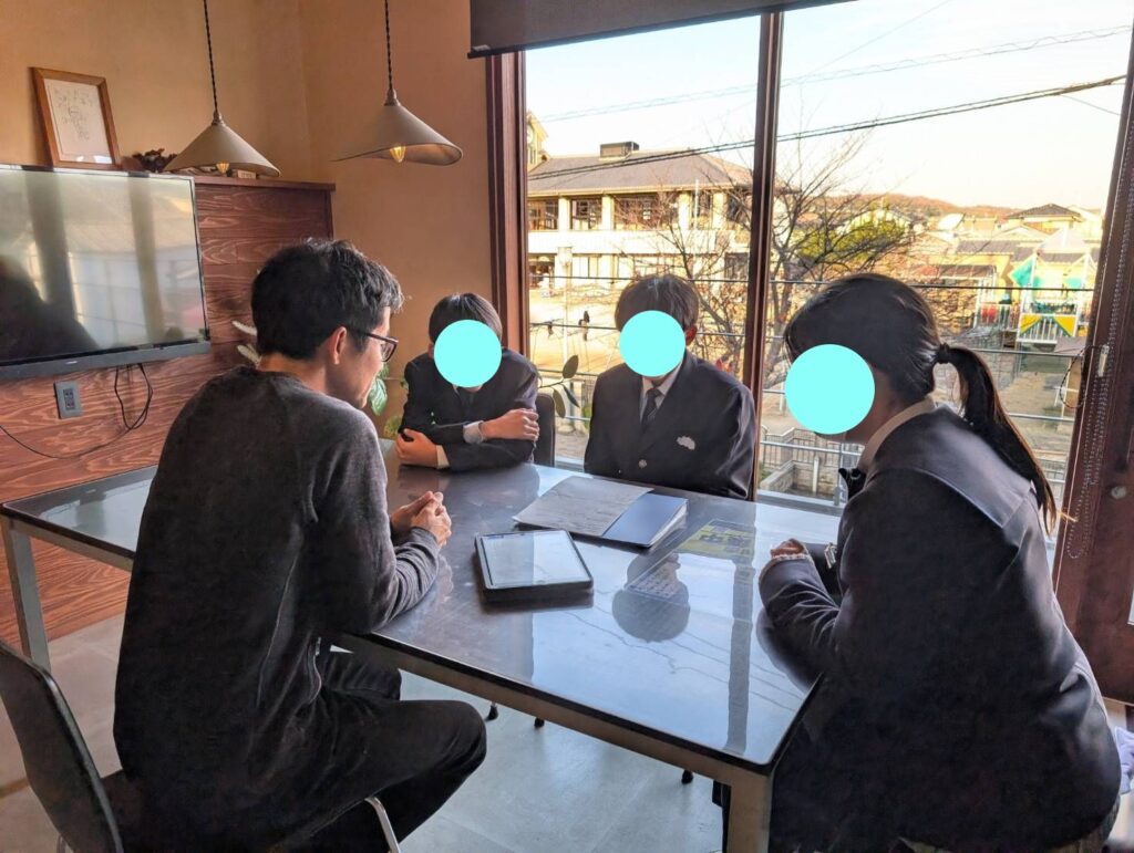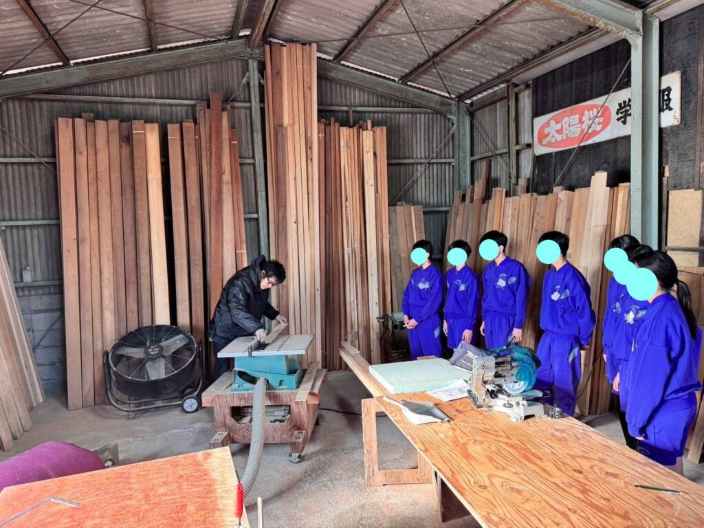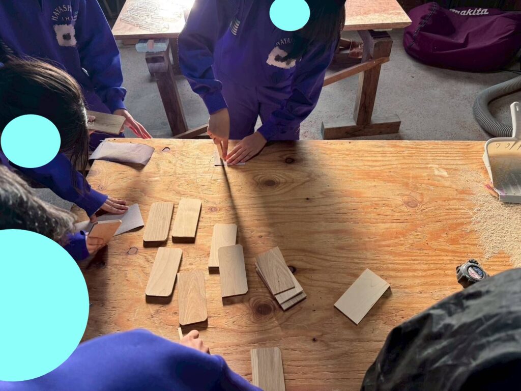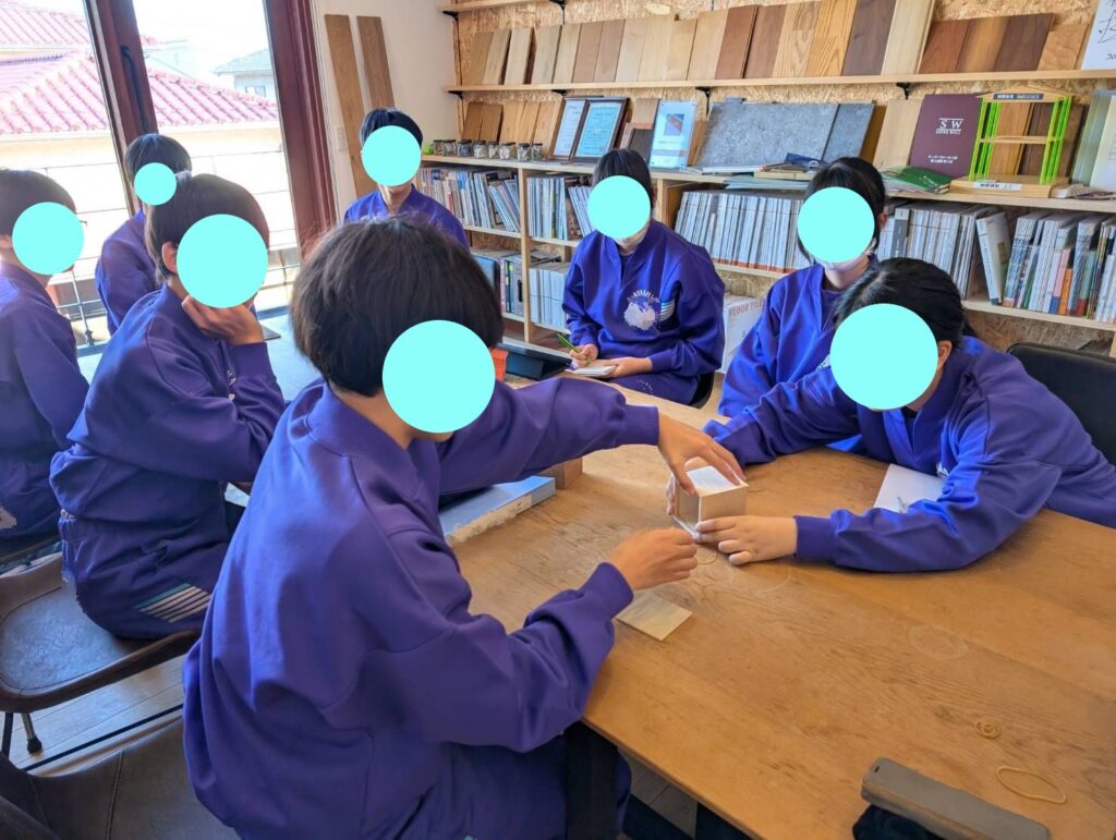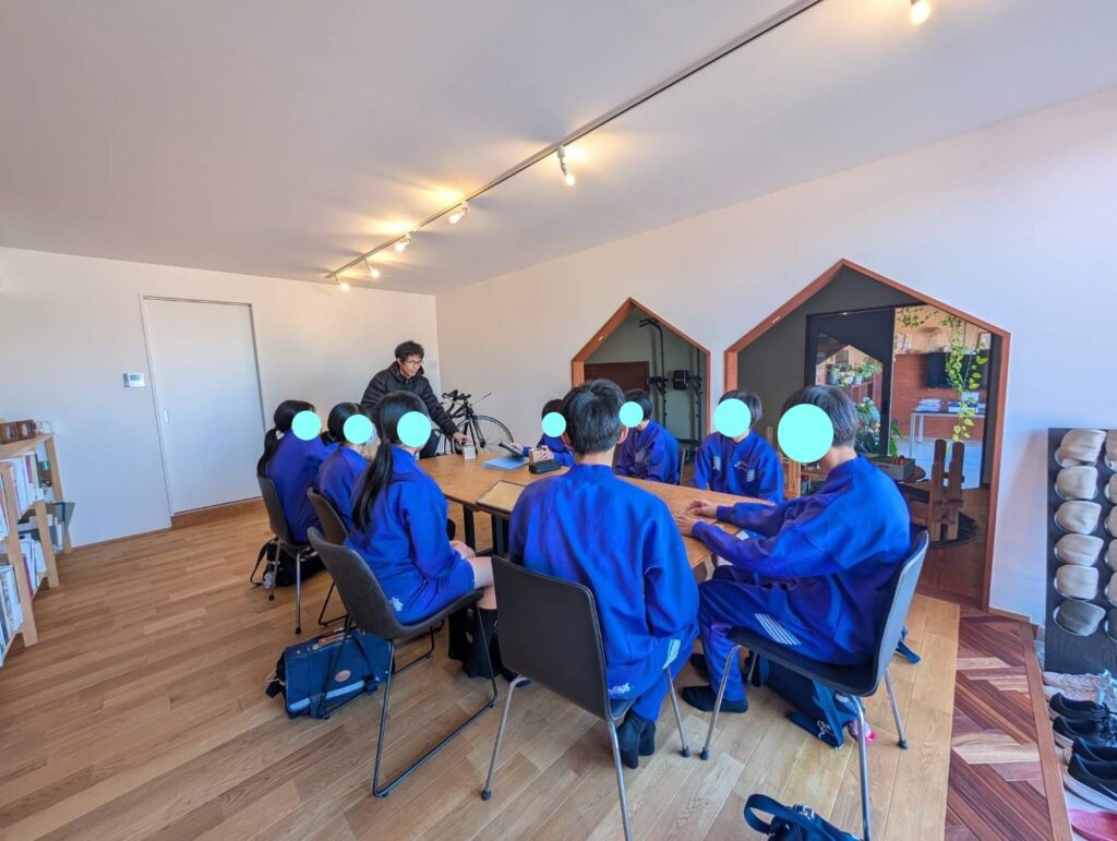 こちらはペン立てワークショップについての最初の打合せの様子です。真ん中の生徒さん、なんと社長の次男くんなんです(^^)