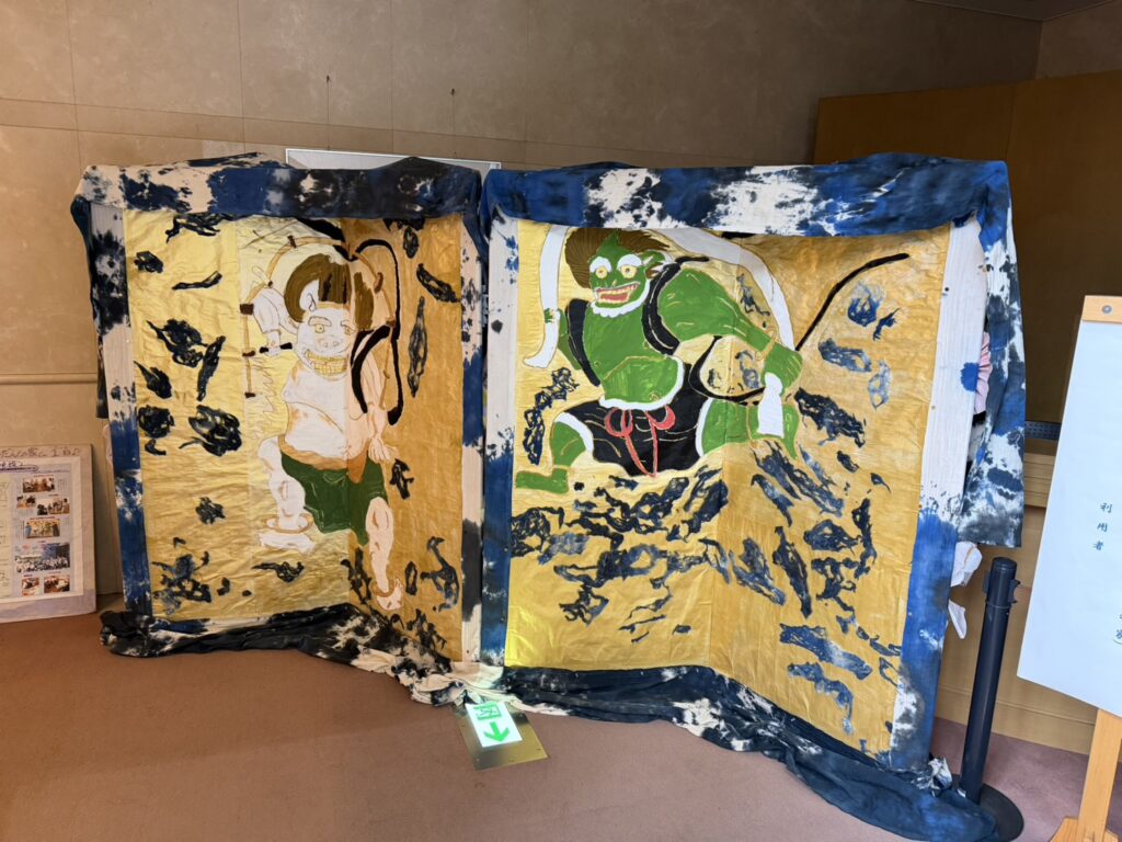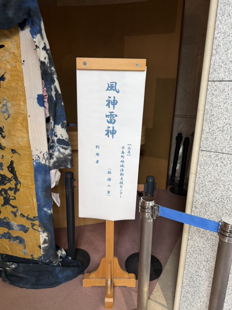 ありました!!大迫力の「風神雷神」の屏風です!!こちらは毎年12月に栴檀の家で行われている「ゆかいな仲間たちの作品展」2023年の作品展のために作られたものです。