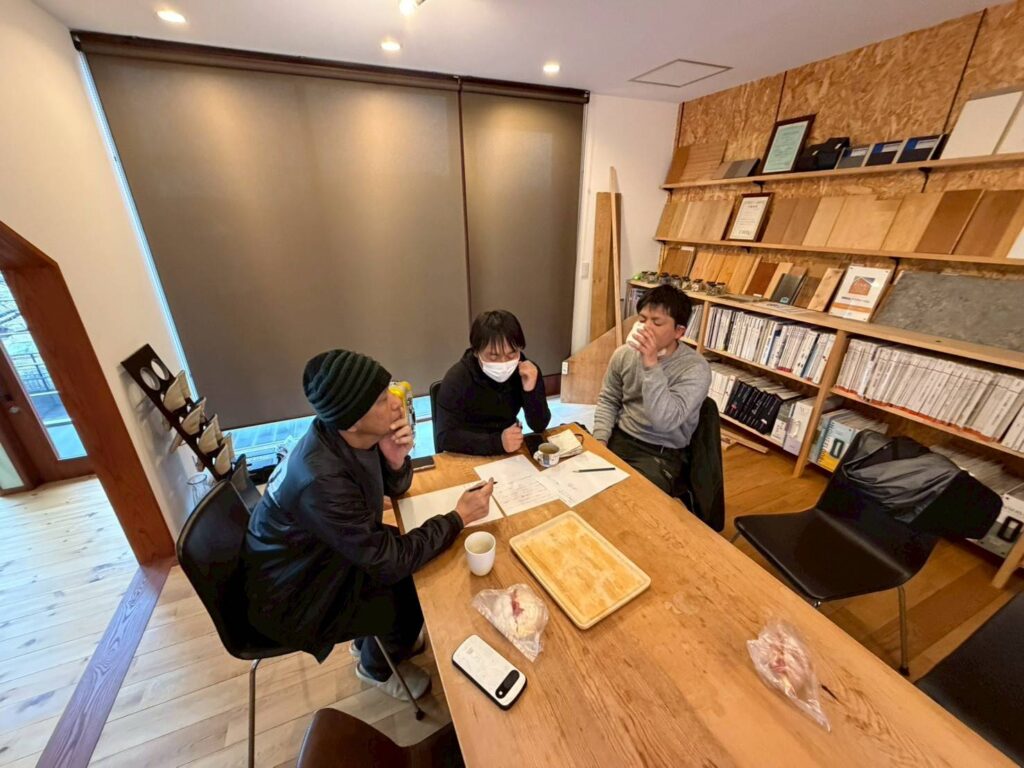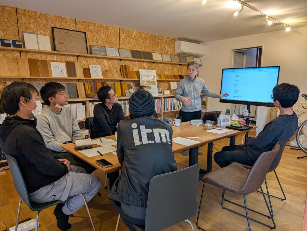 おとといの火曜日に、ワークショップを行いました。職人さん達もそれぞれの現場を少し早めに終えて、15時に事務所に集合しました。