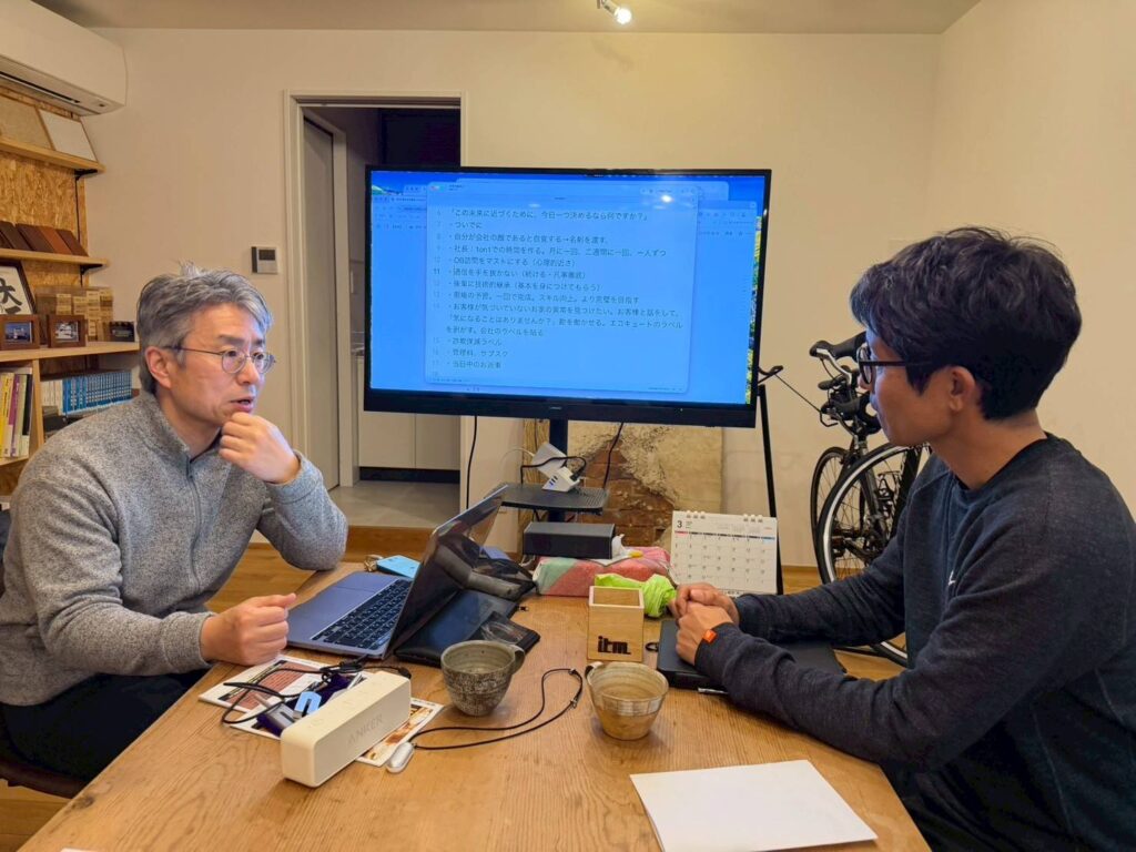 今回は外部の先生にも入ってもらいました。ネットクレードル 松本賢一先生です。数か月前から、社長が色々と経営相談に乗ってもらっています。