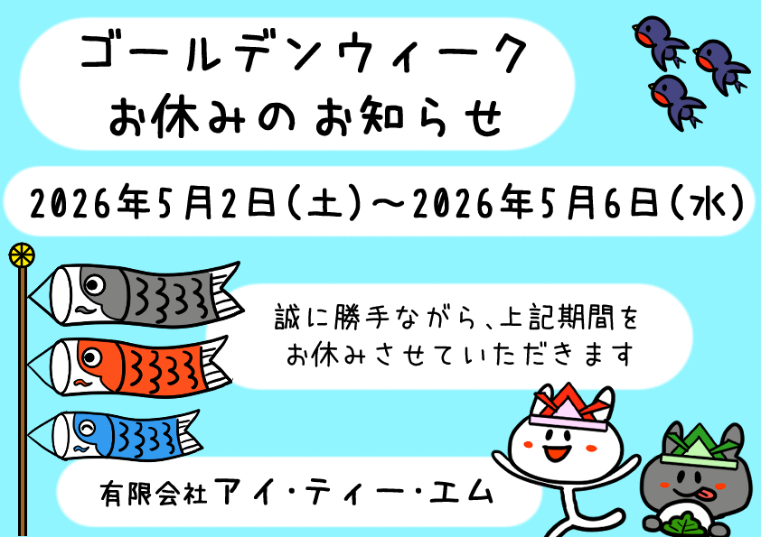 少し早いですが、2026年のゴールデンウィークのお休みについてお知らせいたします。