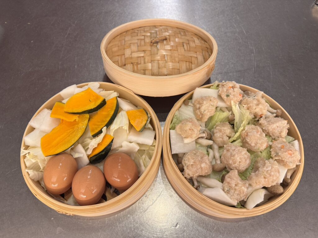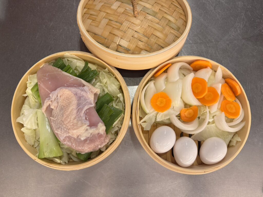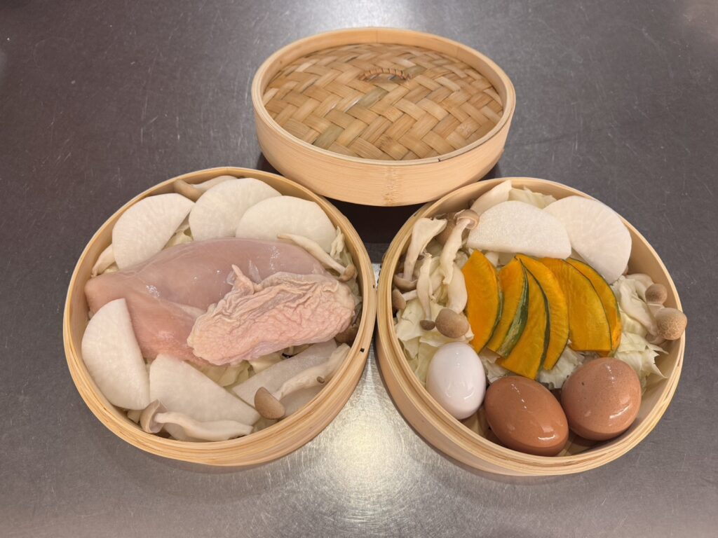 同時に全部の食材を蒸す事ができるので、作業効率も良いそうです。