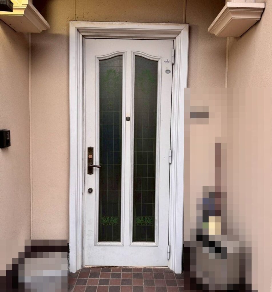 完成写真がコチラです。LIXIL「リシェント玄関ドア3」というシリーズです。既存のドア枠の上に取り付けるため、施工が1日で完了します。