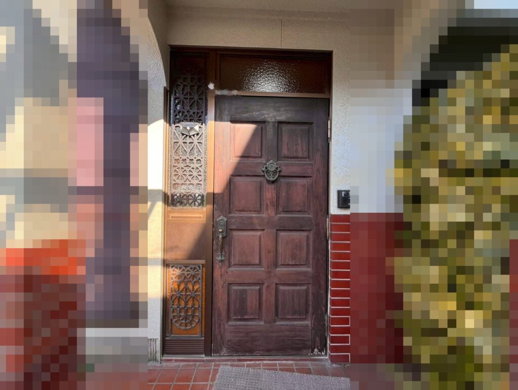 早島町矢尾での、玄関ドア工事です。工事前の写真です。