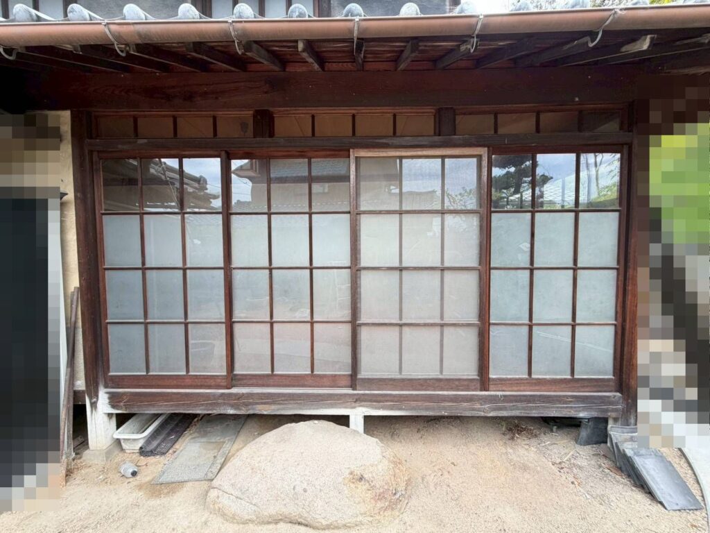 工事前の写真です。縁側の木製のガラス窓です。
