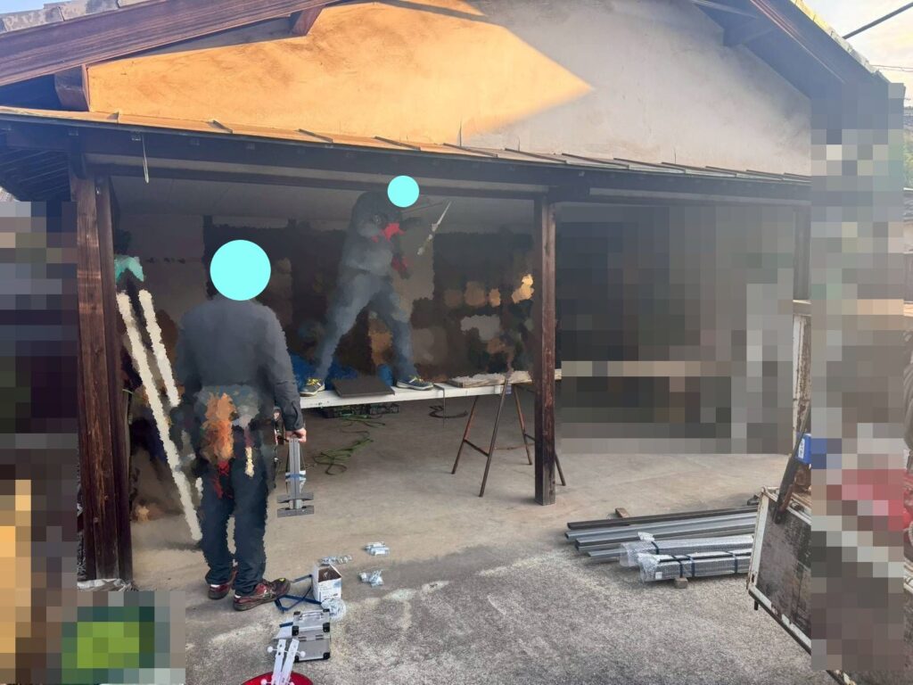 既存のシャッターの撤去などは自社で行いましたが、シャッターの取付自体はメーカーの職人さんに入ってもらいます。