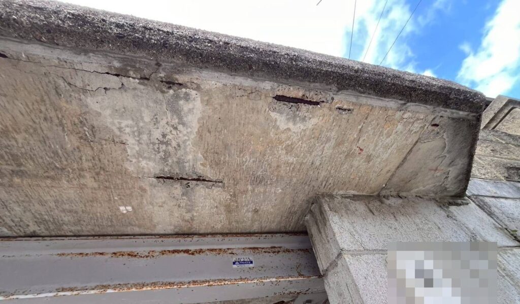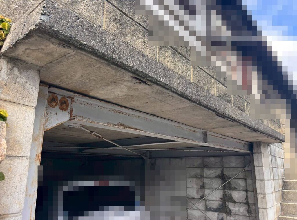 ガレージの庇(コンクリート)が古くなって、コンクリートの破片が落ちてくるとのご相談です。
