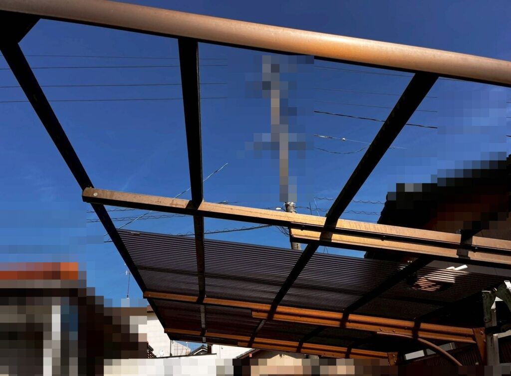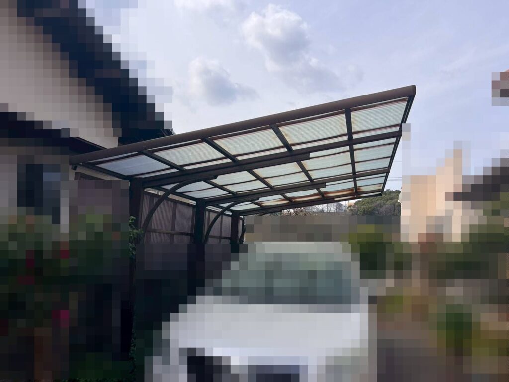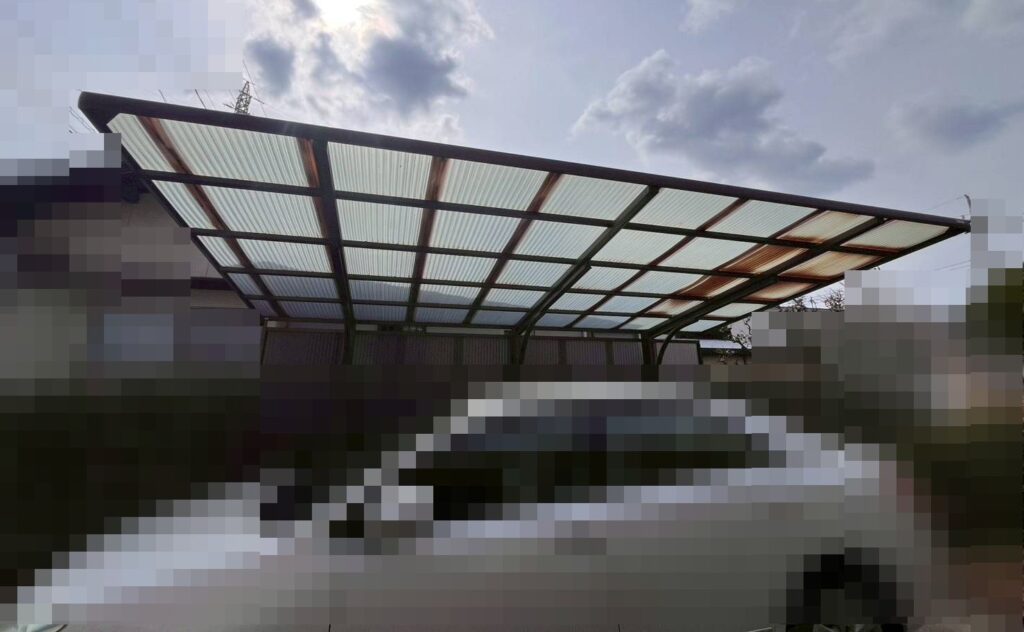 早島町若宮での、カーポートの波板張替え工事です。以前にも工事をお任せいただいたお客様です。
