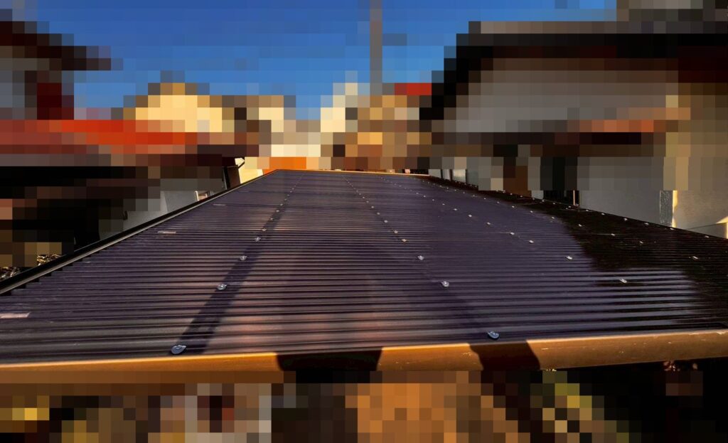 完成写真がコチラです。ポリカーボネート(通称ポリカ)の波板を張りました。色は「ブロンズマット」です。
