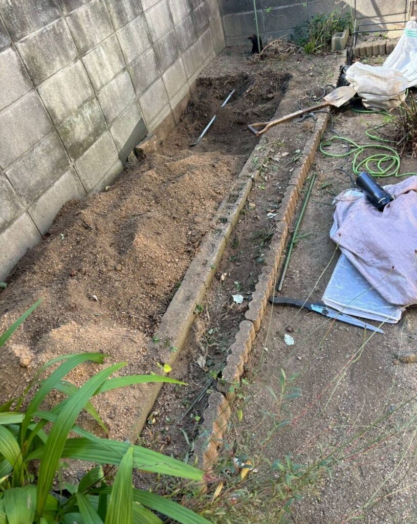 加藤くんがお伺いしました。庭木の撤去は、根を残す「伐採」と、根も撤去する「伐根」のいずれかで承っております(伐根の方が金額は上がります)。今回のお客様は「伐根」で承ったので、根っこが残らないようにしっかりと撤去しています。