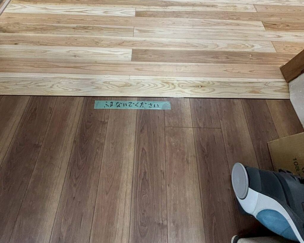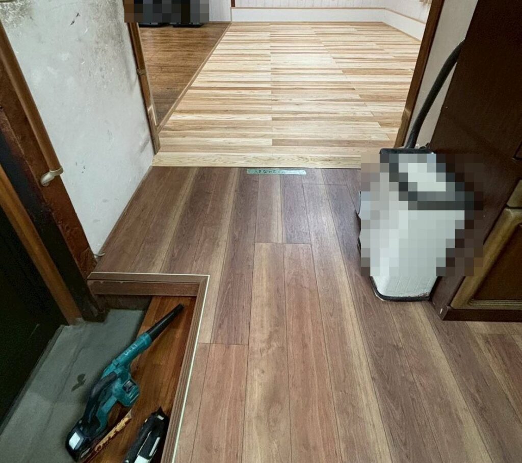 隣の部屋との段差は、工事前よりは少なくなりましたが、まだ少し段差があります。(隣の部屋は床を下げましたが、もう一つの部屋の床に高さを合わせたため)