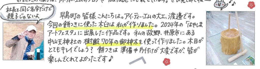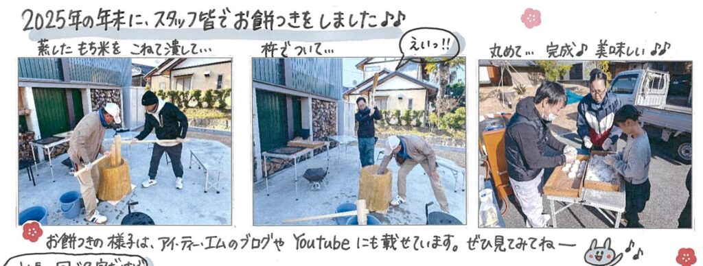 うら面には、年末にしたお餅つきの様子を載せました♪