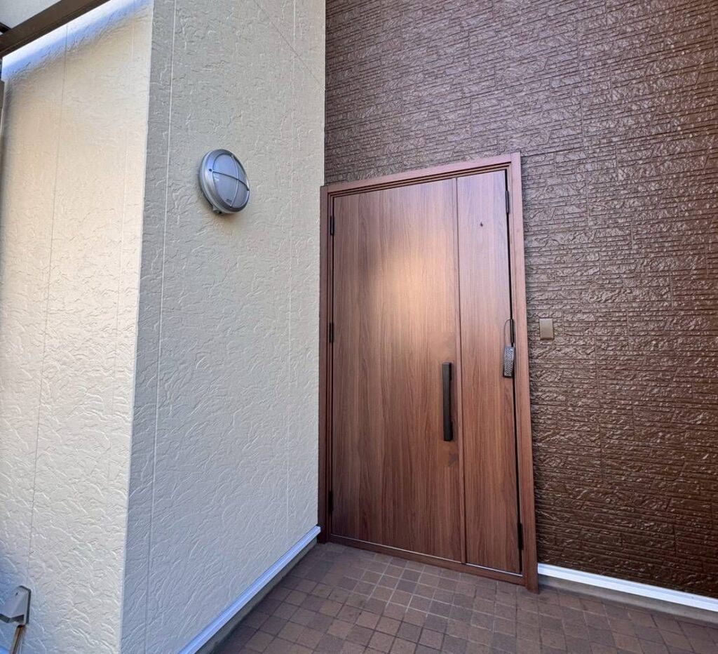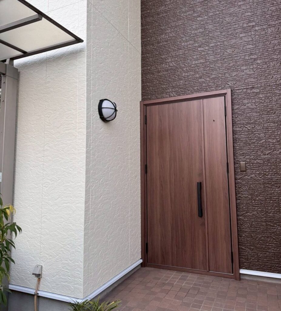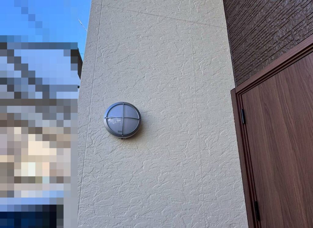 早島町前潟での、玄関照明の交換工事です。こちらは、少し前にブログで外壁塗装をご紹介したお客様です。工事後に追加でお任せいただきました。