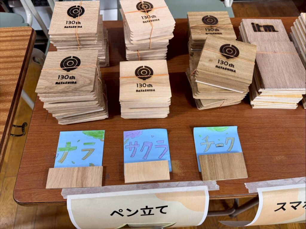 こちらは「ペン立て作り」「スマホスタンド作り」のワークショップです。木を選べるのが良いアイディアです♪