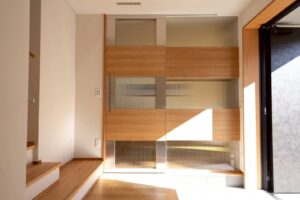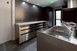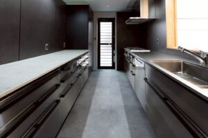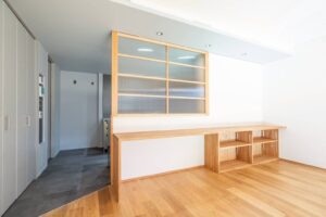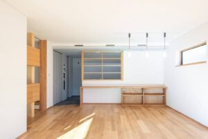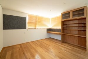 キッチンは、黒+ステンレスでシックな印象です。キッチン前の格子戸を閉めれば、籠れる空間となっております。LDKや寝室は、白+木目のナチュラルな印象です。一部壁にタイルを貼ったトイレも、個性的で深みのある空間です。建具や家具は造作の物も多く、細部にまでこだわった造りになっております。断熱性能も高く、永く快適に過ごしていただけるお家となっております。