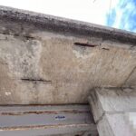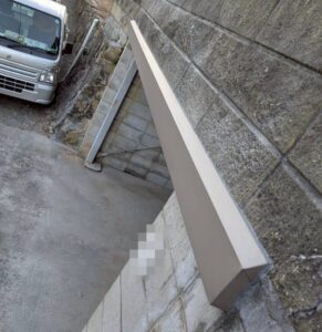 駐車場の庇のコンクリートが崩れてきたので、撤去して板金で補修しました。