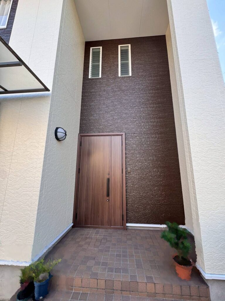 早島町前潟での、外壁塗装と玄関ドア交換工事です。
